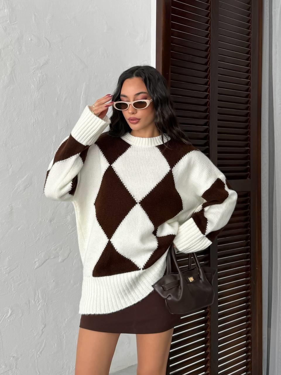Bisiklet Yaka Baklava Desenli Triko Kazak
