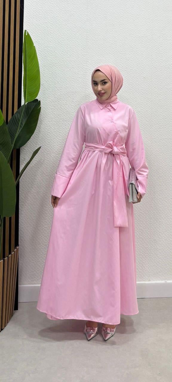 Gömlek Yaka Kuşaklı Çapraz Detay Elbise